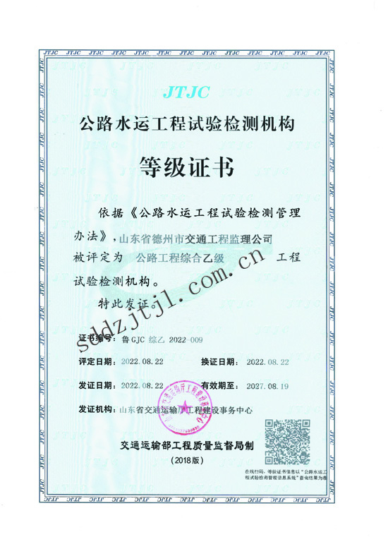 交通運輸部公路工程試驗檢測綜合乙級資質(zhì)