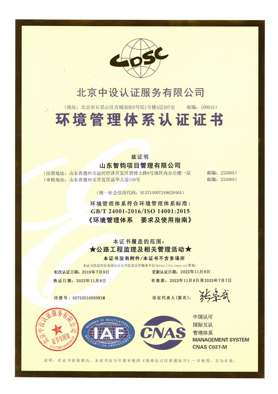 ISO9001環(huán)境管理體系認(rèn)證證書