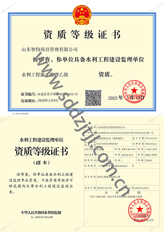 水利部水利工程施工監(jiān)理乙級(jí)和水、土保持工程施工監(jiān)理乙級(jí)資質(zhì)