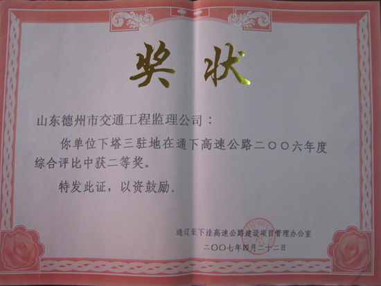 2006年內(nèi)蒙下塔高速綜合評(píng)比“二等獎(jiǎng)”