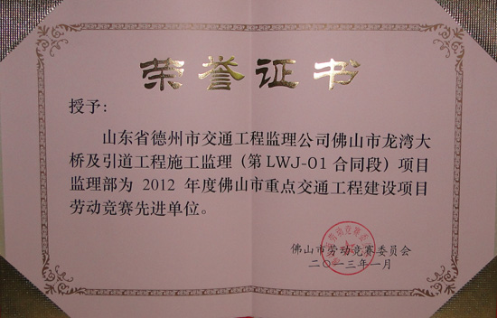 2012年度佛山市重點交通工程勞動競賽“先進單位”