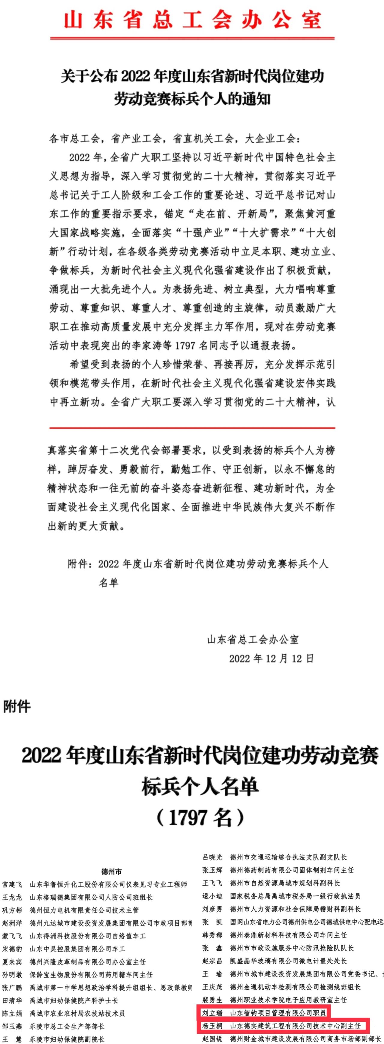 2022年度山東省新時(shí)代崗位建功勞動(dòng)競(jìng)賽標(biāo)兵”榮譽(yù)獲得者