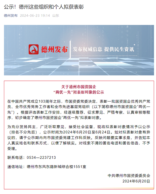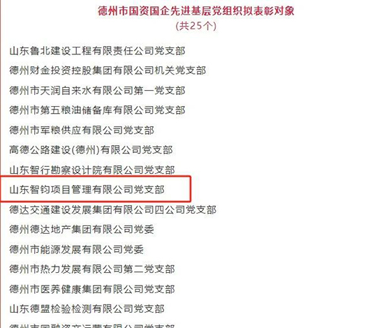 公司黨支部和個人獲德州市國資國企“兩優(yōu)一先”表彰